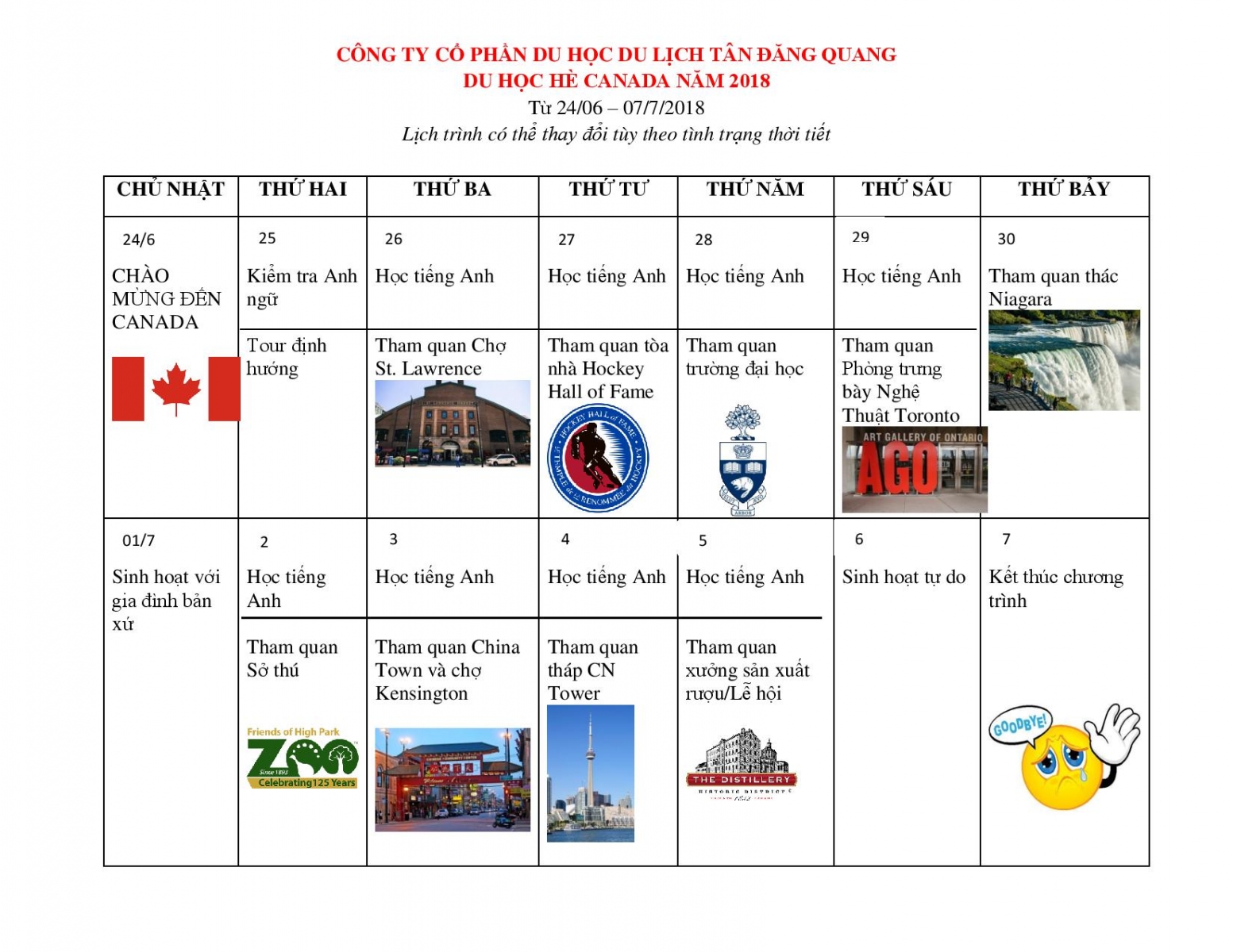 Thời gian chương trình dự kiến: 24/06/2018 – 07/07/2018