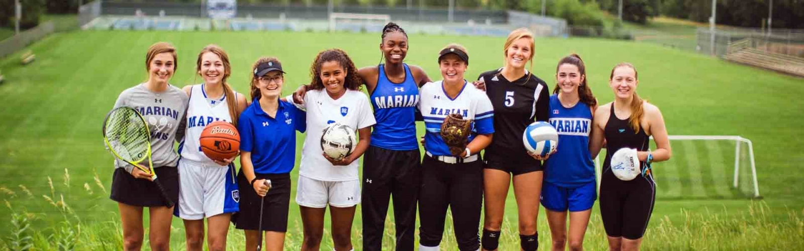 Trường có nhiều cơ sở vật chất về thể thao thuộc loại tốt nhất, và giảng dạy 9 bộ môn thể thao khác nhau. Nhiều vận động viên học sinh tiếp tục thi đấu trong các chương trình thể thao ưu tú bậc đại học. Các đội thể thao của Marian đã giành được 66 chức vô địch của bang.