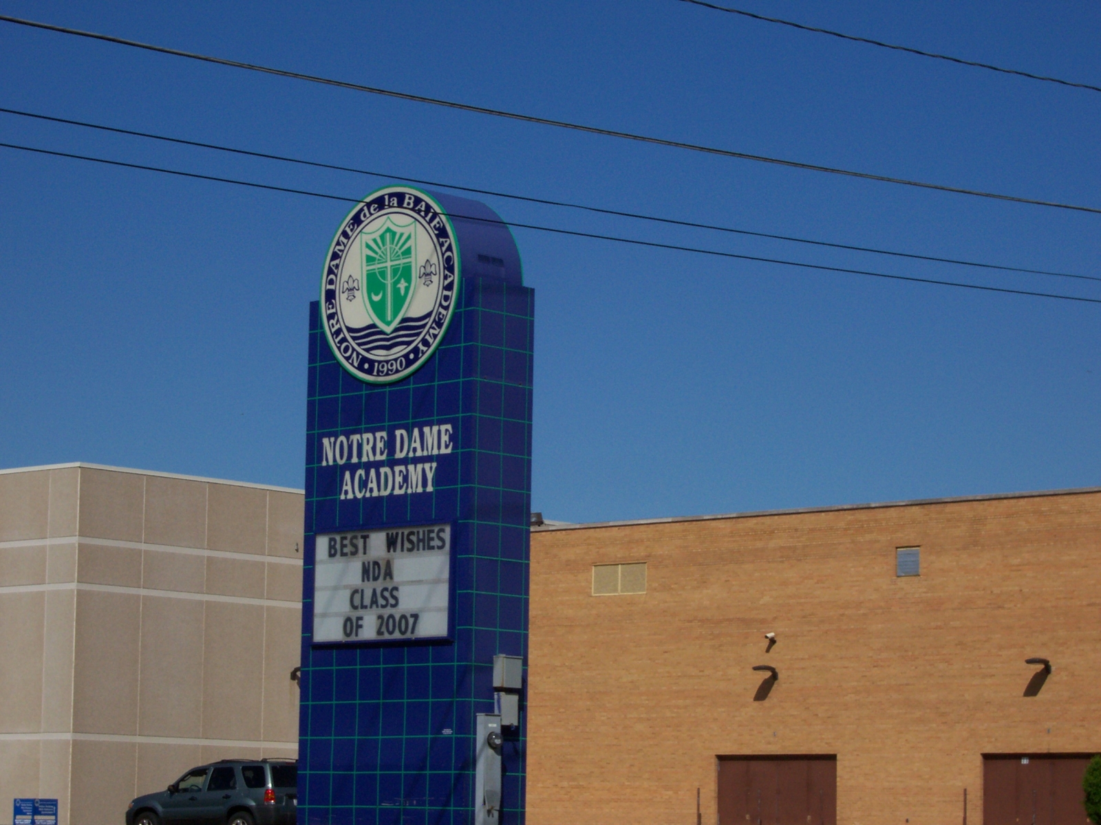Học viện Notre Dame tọa lạc tại Green Bay, Wisconsin, quê hương của Green Bay Packers, một đội bóng nổi tiếng của Mỹ. Green Bay là một thành phố cỡ trung bình nằm ngay bên bờ Green Bay ăn vào Hồ Michigan. Mùa đông se lạnh với suối nước nhẹ và mùa hè ấm áp, thành phố cũng có nhiều hoạt động giải trí, cửa hàng và nhà hàng.